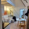 The apartment itself is clean and bright because of the light color settings. The bathroom is spacious and with a shower and toilet. The kitchen offers a fridge, induction cooking and stove.