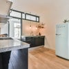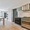 Modern open kitchen with all built-in appliances; 6-burner gas stove, wider convection oven, dishwasher, fridge/ freezer!